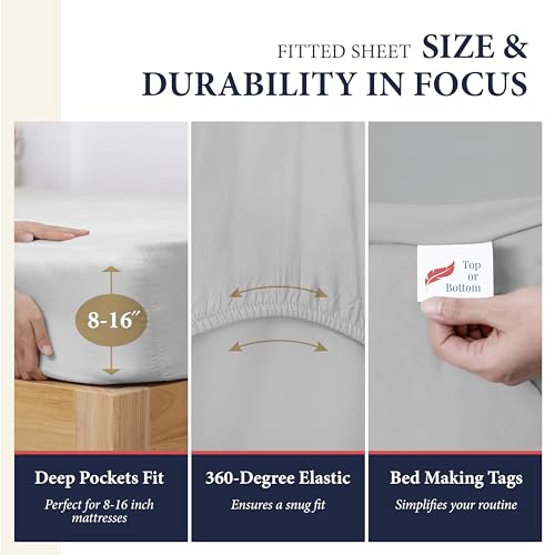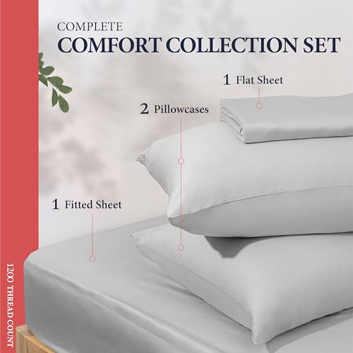 Ashton Sheets 100% Egyptian Cotton Sheets California King Size – 1200 Thread Count 4 PC Cal King Sheets Egyptian Cotton. Cooling Sateen Sheets. High Thread Count Sheets California King – Light Grey